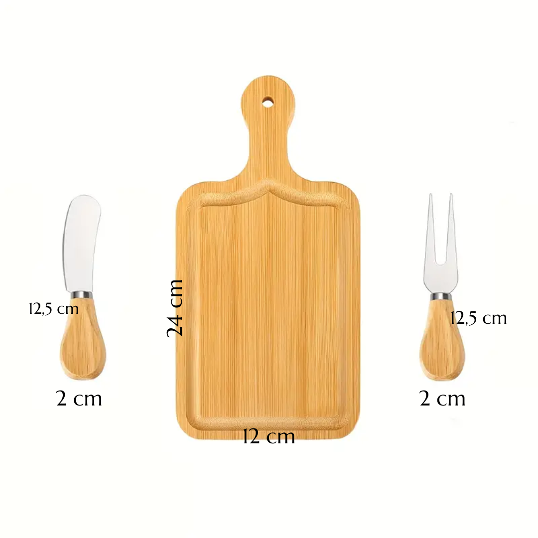 ♡ Incluye tabla de madera de alta calidad y 4 cubiertos de acero inoxidable.